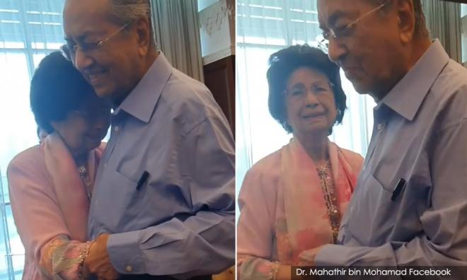 Dalam klip video pendek dimuat naik di Facebook ahli parlimen Langkawi itu, Siti Hasmah memeluk suaminya untuk beberapa ketika sambil aksi itu dirakam beberapa orang dekat dengan pasangan tersebut, termasuk anak mereka Marina Mahathir.
